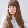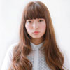 バツンと切り揃えたバングが瞳の印象を際立たせます。